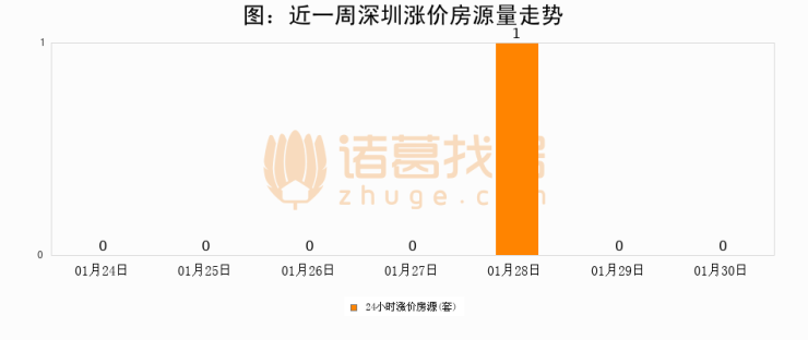 根据诸葛找房数据显示,深圳24小时涨价房源量为0套,较01月29日持平。