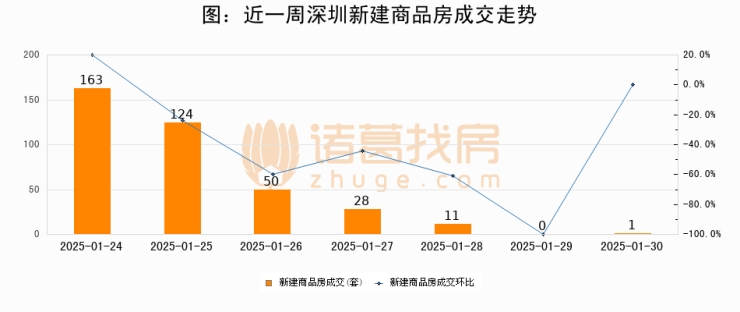 根据深圳市住房和城乡建设局数据显示,2025年01月30日深圳新建商品房成交1套,较昨日增加1套,环比上涨0%