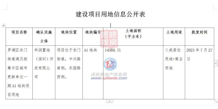 近日 ,罗湖区城市更新和土地整备局发布关于罗湖区东门街道湖贝统筹片区城市更新单元一期A1地块项目建设用地批复的公告