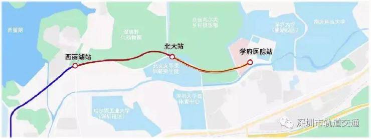 7号线二期由7号线一期工程终点西丽湖站引出,终至学府医院站,线路全长约 2.28 km,设站 2 座,全线采用地下敷设方式。