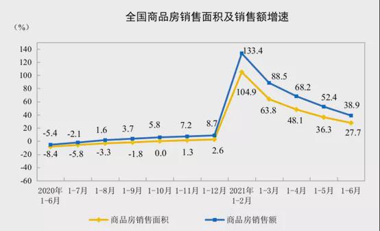 再看看上半年商品房销售面积,商品房销售面积88635万平方米,同比增长27.7%。