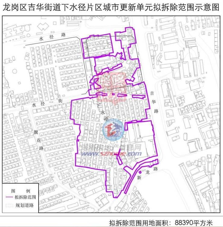该项目位于吉华街道吉华路与新龙路交汇处西北,拟拆除范围用地面积88390平方米,拟更新方向为居住、商业等功能;
