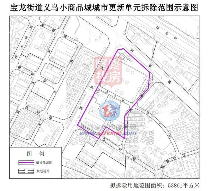义务小商品城城市更新项目位于宝龙街道,深汕路以北,同福路以南,赤石岗路以西,鸿基路以东。拟拆除范围用地面积53861㎡,属于“商改商”项目。