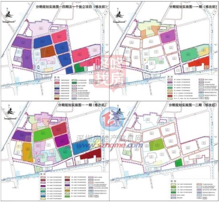 由原规划批复“分四期及一个独立开发项目实施”修改为“分两期及一个独立开发项目实施”,各分期内的每个开发建设用地划分为独立子项目。