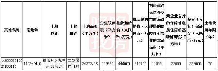 初始建设无偿移交市前海管理局的保障性租赁住房建筑面积11000平方米,竞企业自持的保障性租赁住房最高限制面积22000平方米,土地使用年限70年。