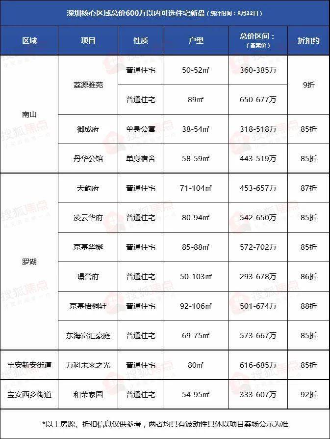 南山3字头,罗湖2字头!总价600万内在深圳核心区有12盘可选