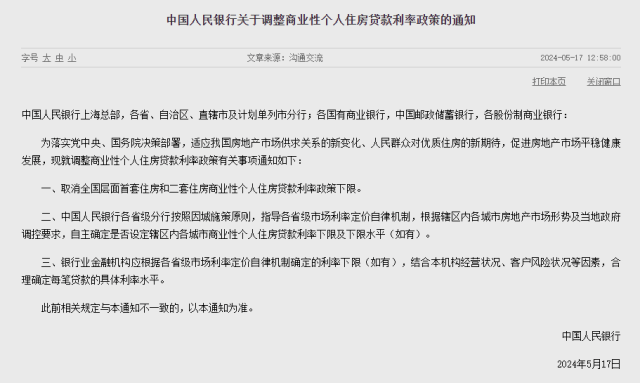 为落实党中央、国务院决策部署,适应我国房地产市场供求关系的新变化、人民群众对优质住房的新期待,促进房地产市场平稳健康发展,现就调整商业性个人住房贷款利率政策有关事项通知如下: