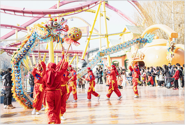 从“火龙钢花”“非遗鱼灯”,到“包饺子大赛”“花灯DIY”,再到“‘跃龙门’巨型打卡点”……北京欢乐谷“花样整活”,吸引了数以万计的游客前来“围观”,春节假期业绩同比增幅近130%。“年味十足”“热闹欢快”“打铁花表演很惊艳”“国潮、中国文化氛围很浓”等评论此起彼伏,好评如潮。