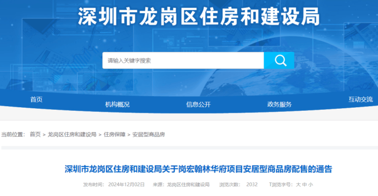 近日,龙岗区住房和建设局发布《深圳市龙岗区住房和建设局关于岗宏翰林华府项目安居型商品房配售的通告》(以下简称《通告》)、《深圳市鼎宏投资发展有限公司关于岗宏翰林华府项目安居型商品房配售有关事项的通知》,启动岗宏翰林华府项目安居型商品房配售工作。