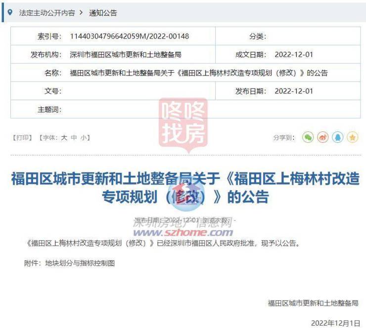 近日,福田区城市更新和土地整备局发布《福田区上梅林村改造专项规划(修改)》。