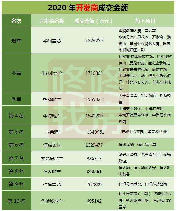 房企方面,深圳的成交金额前三强房企分别是华润置地、佳兆业地产和招商地产。