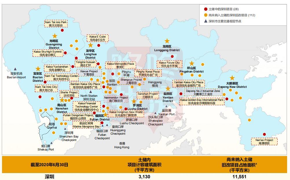 从2020上半年年中报公示的项目情况显示,未来1-2年佳兆业在深圳有7个项目,3-5年深圳有22个项目。