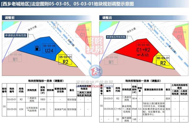 位于12号线宝安客运站旁,西乡大道与前进二路交汇处西南角的加油站用地规划调整,由公共加油加气站用地,调整为商业用地+二类居住用地,用地面积5968平,容积率3.5,建面约2.1万平。