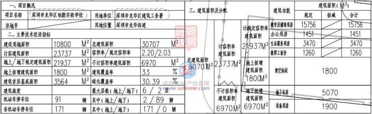 龙华区创新实验学校,建设用地面积10800㎡,总建筑面积30707㎡。