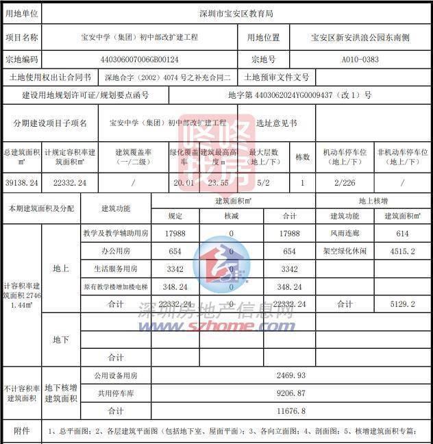 深圳市规划和自然资源局宝安管理局公布宝安中学(集团)初中部改扩建工程(暂定名)项目《建设工程规划许可证》及总平面图。