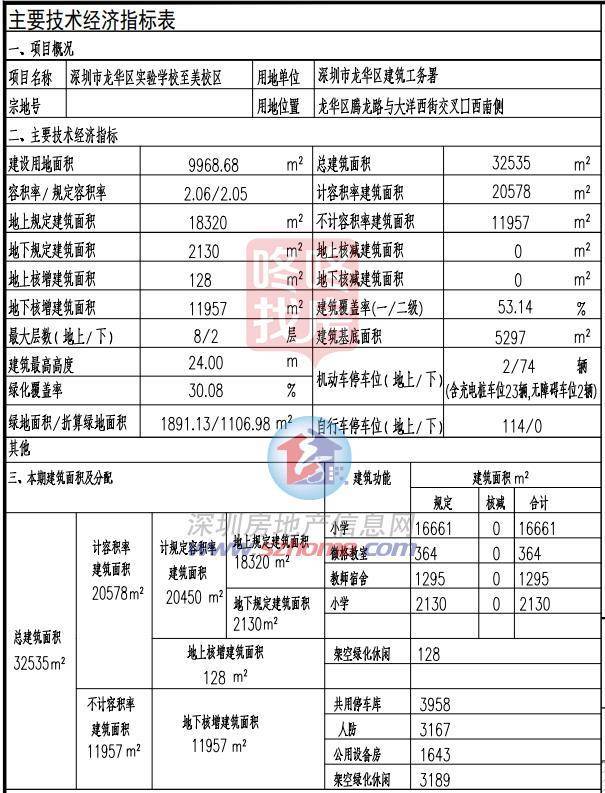 龙华区实验学校至美校区位于龙华区腾龙路与大洋西街交叉路西南侧,30班/1350小学学位,建筑用地面积9968.68平方米,总建筑面积32535平方米。