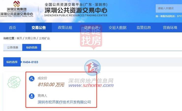 最终,深圳市宏济医疗技术开发有限公司以底价竞得。
