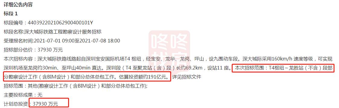 7月1日,深圳公共资源交易中心发布深大城际铁路工程勘察设计服务招标公告,招标金额3.8亿!
