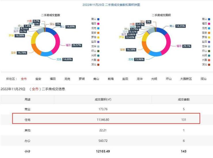 11月29日二手房住宅网签131套。宝安20套;福田35套;龙岗19套;罗湖21套;南山21套;前海0套;盐田1套;龙华11套;光明0套;坪山2套;大鹏1套。
