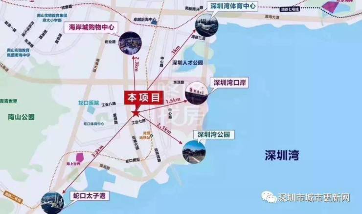 原联合饼干厂城市更新项目位于南山区招商街道,后海大道与蛇口工业七路交汇处,距离地铁2号线海月站约580米,轨道交通便利,周边配套设施成熟,有海岸城购物中心、深圳湾体育中心、深圳湾公园、蛇口太子港等。