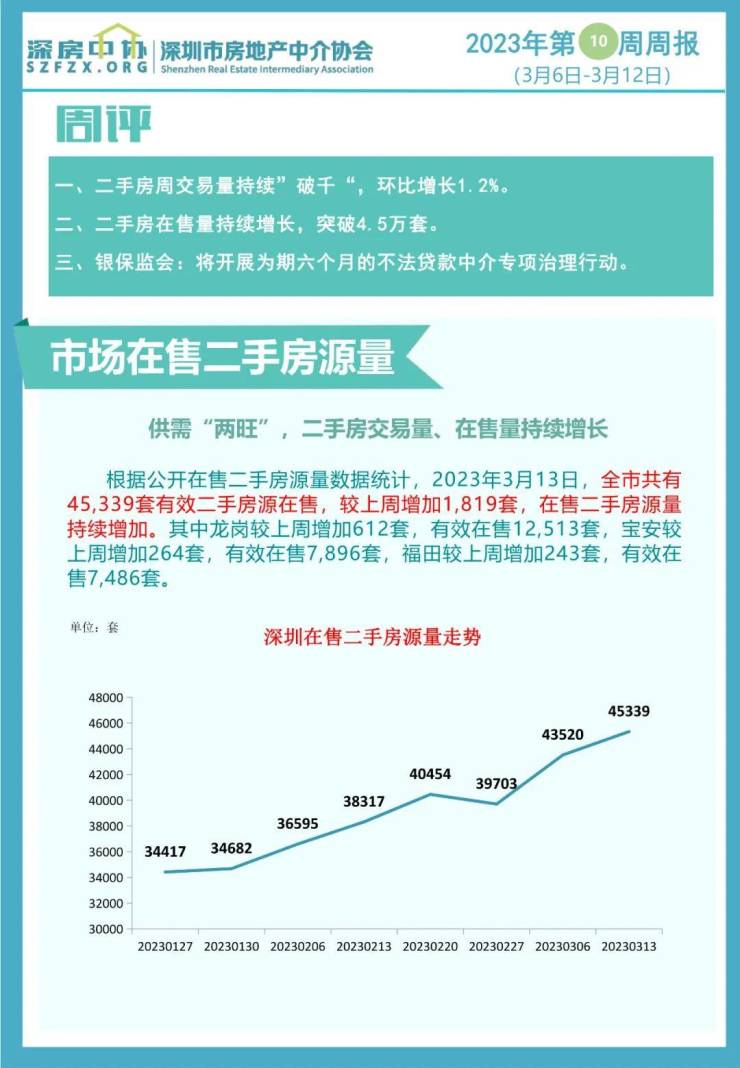 供需“两旺”,二手房交易量、在售量持续增长——深圳市房地产中介行业2023年第10周周报(3.6-3.12)