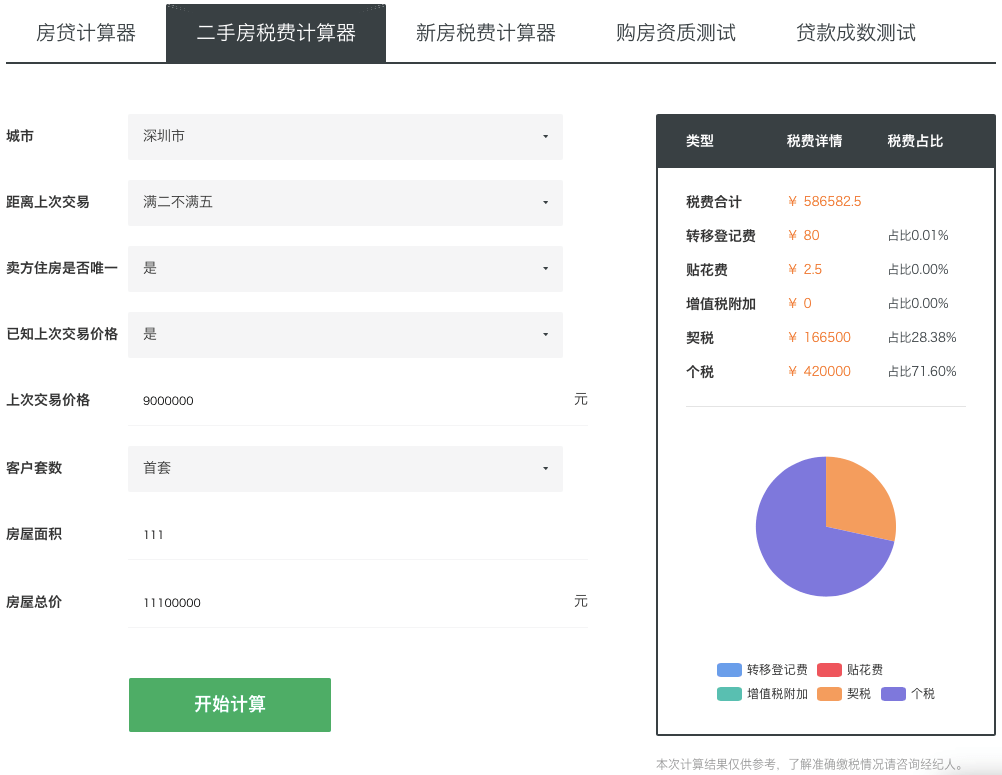 在我们的设定中,京基御景峯这套房子满二不满五,且是家庭少有住房,交易税费大约是59万。