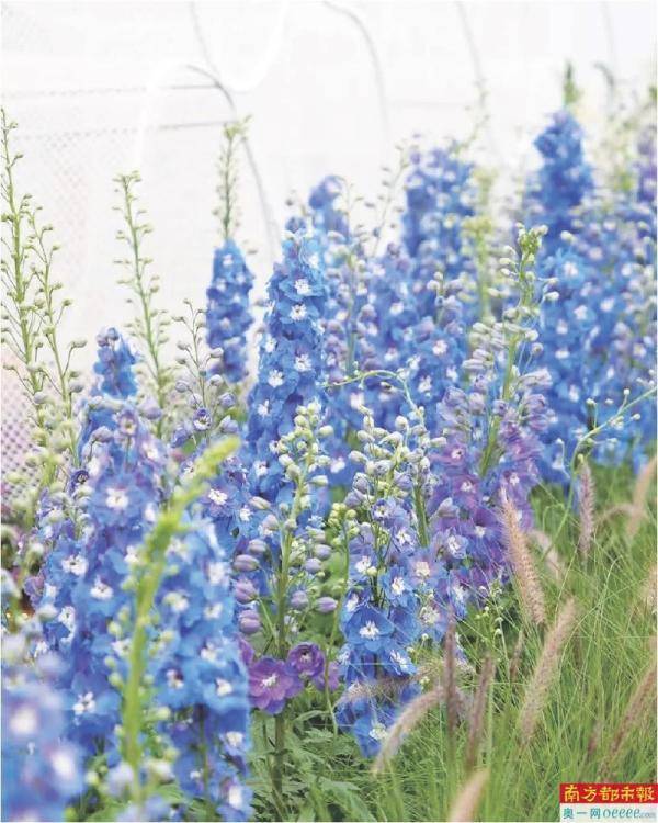 在2024粤港澳大湾区花展现场,备受公众关注的是,大花飞燕草“凤凰”首次跟公众见面。“主题花园共有26个品种的大花飞燕草,与其他花卉结合,打造了400多平方米的花海。”深圳国艺园林布展负责人李熙莉介绍,其中这个红色系的大花飞燕草新品种,形态美丽,非常适应深圳的气候环境,有望广泛种植在花境、花坛中供欣赏,也可作为鲜切花用于室内空间的各种场景。