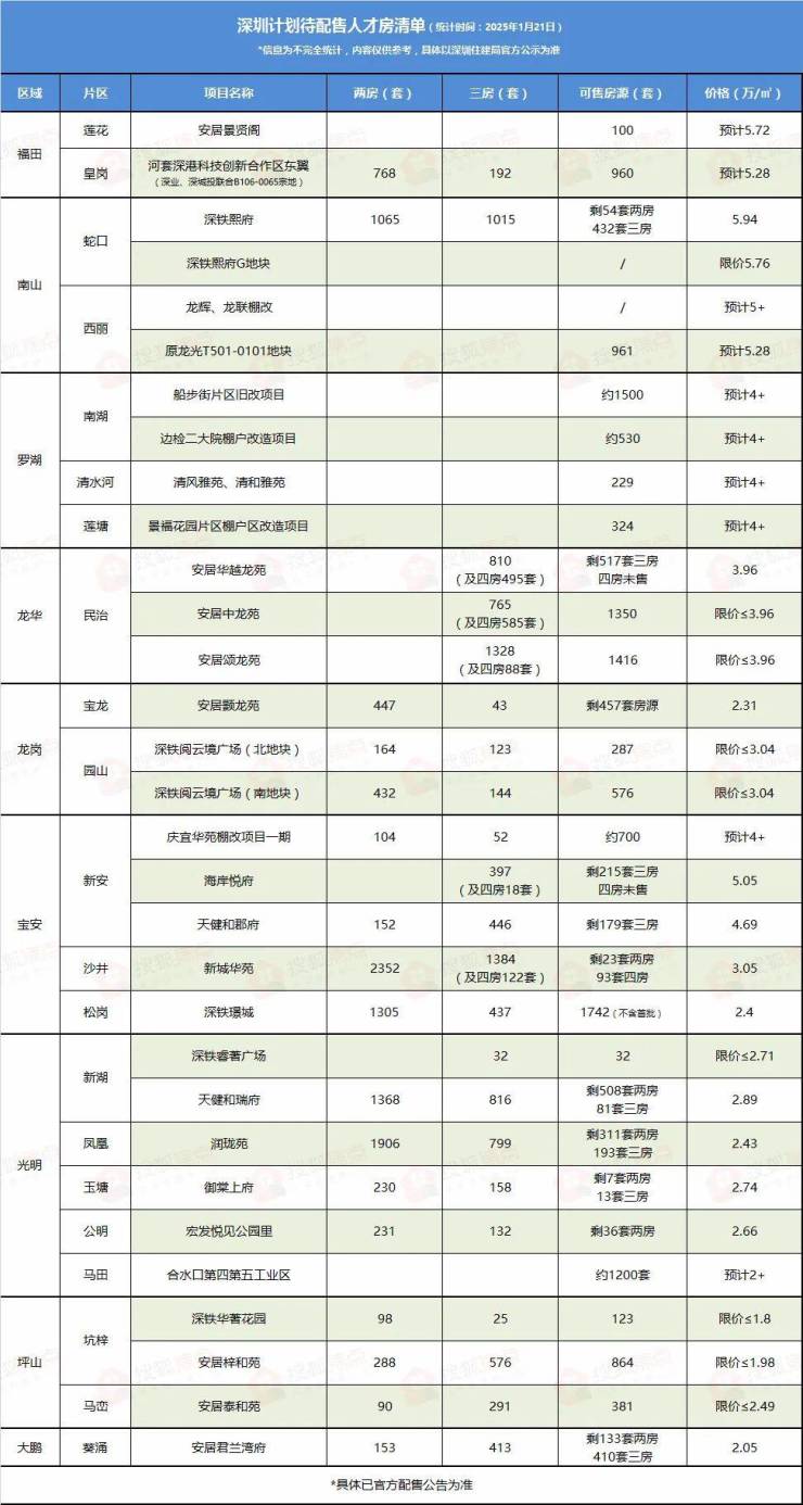 从2022年首批可售人才住房推出,主要供应项目多在宝安、龙华、光明等区域核心片区,福田、罗湖等城市核心板块尚未有房源配售。至2025年,或有越来越多的核心地段的人才房将推出。从区域来,以往的项目多在中西部,接下来的供应或中东部。