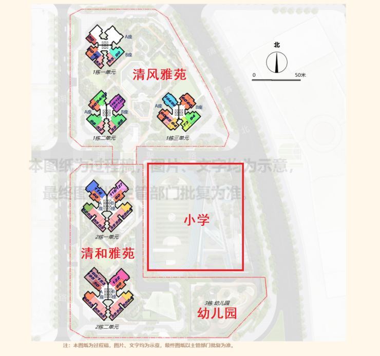 根据规划,清风雅苑(宗地号H405-0085)规定建筑面积88860㎡,包括住宅(回迁)61093㎡、出售型人才住房12496㎡、土地整备安置房793㎡以及相关社区配设施。