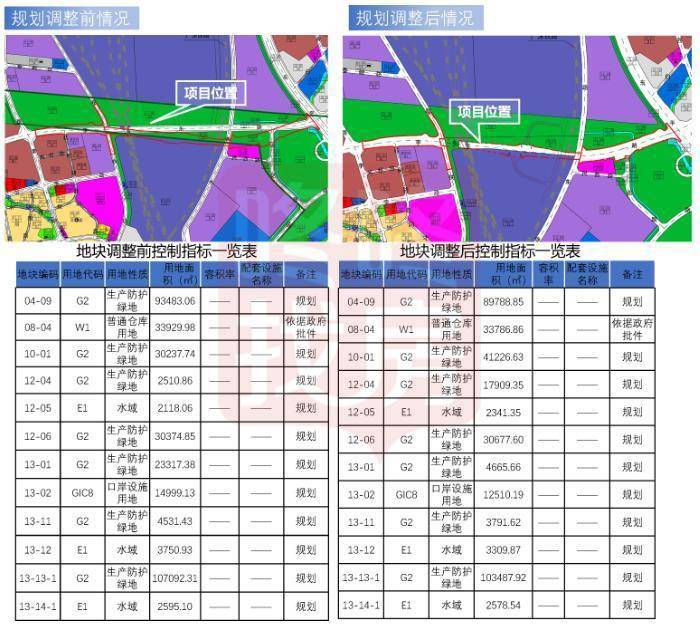 各地块规划调整后,功能未变,仅面积有变化: