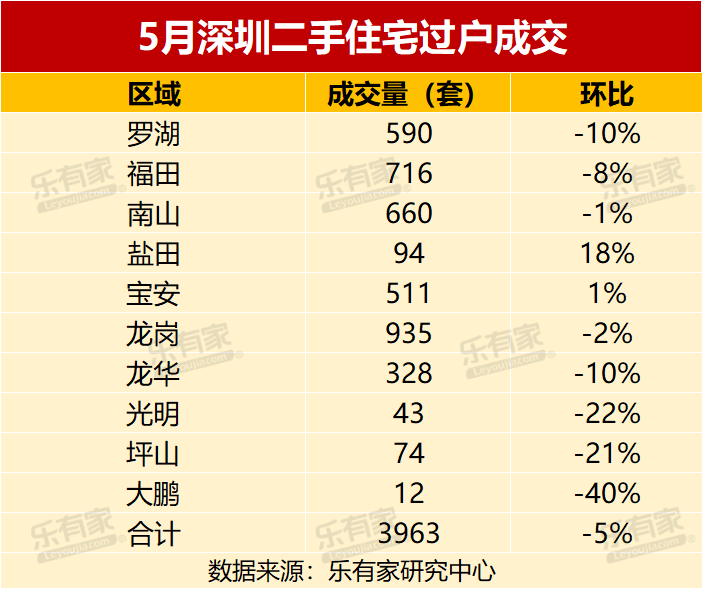 乐有家深圳所有门店交易数据显示,5月签约的二手住宅套数环比上涨超30%,同比上涨超110%。从门店成交数据来看,5月深圳二手房市场比4月更好。