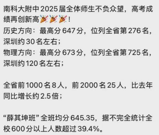2025深圳高中高考成绩汇总!多所新校首届高考情况曝光