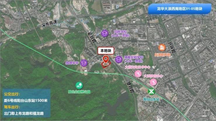 龙华大浪西南地区01-05地块,背靠阳台山森林公园,邻近6号线阳台山东站,交通相对便利。