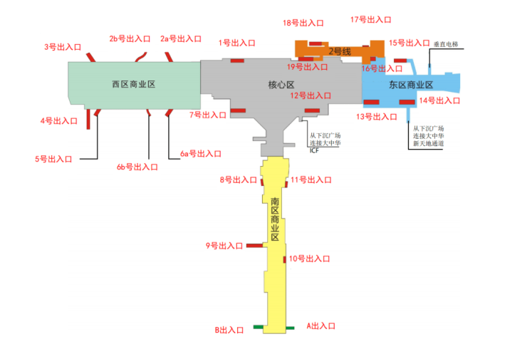 17号出入口:位于深南大道北侧、彩田路东侧,此出入口为预留通道,未来向北连接福田科技广场。