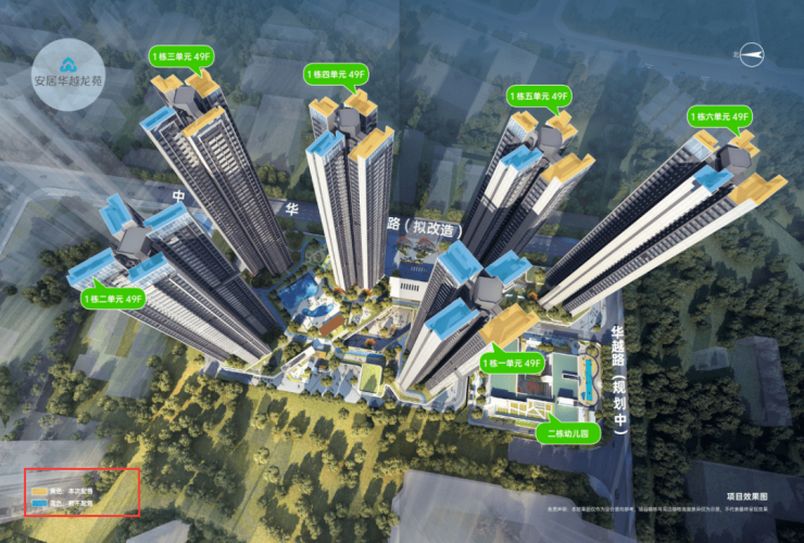 项目共6栋150米超高层住宅,1栋18班幼儿园组成。住宅总数为1305套,其中包含810套建面约84-90㎡的三房两卫户型。据悉,项目还有360套119㎡四房两卫户型,约135套149㎡四房两卫户型,不在本次配售范围。