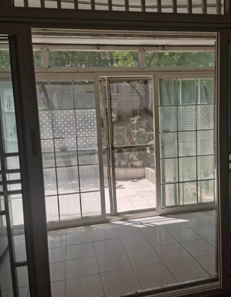 我们先去了某老小区的一楼,正好遇到有一家人刚看完房出来。房子是一对老夫妻的,打扫得很干净。据中介介绍,房子是两室一厅,并且带阳台天井,厨房面积是送的。老人家说孩子不放心他们,所以要把房子卖了搬过去同住。