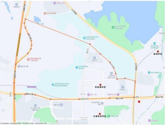 (三)初中学段招生范围:将留仙大道、沙河西路、同沙路、新高路、同乐路合围区域(红线合围区域内)划为西丽湖学校初中学段招生范围。