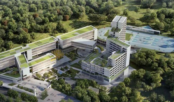 学校紧靠葵涌公园后山,根据项目地形地貌块特点,将打造“山地台阶”,依山就势,形成多层屋顶花园;并将负一层的下沉“山谷”作为集会中心,“山谷”中设立树下广场,成为师生交流空间。同时,通过户外走廊将教学楼连接起来,打造公告展览长廊、休闲阅读空间、微创意园地、中央庭院、阶梯讨论区等。