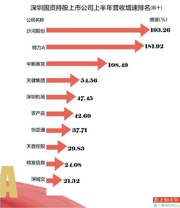 营收增速方面,42家公司中有25家实现正增长。其中,沙河股份、特力A、中新赛克、天健集团、深圳机场、农产品、怡亚通、天音控股、特发信息、深城交、特发服务、中国宝安、中集车辆、深南电A、盐田港、力合微、科陆电子、深圳能源、深赛格等19家公司实现两位数以上增长。湾区发展(港股)未显示营收变化幅度。