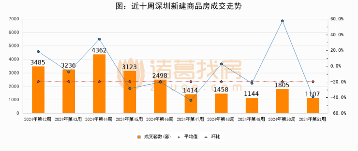 【深圳成交周报】第51周新房成交1107套,二手房2118套,涨价房源103套