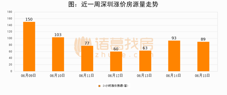 根据诸葛找房数据显示,深圳24小时涨价房源量为89套,较06月14日减少4套,环比下降4.3%。与此同时,涨价房源占比小幅回落,对于购房者来说是一个入市窗口期,购房者可抓住时机入市。