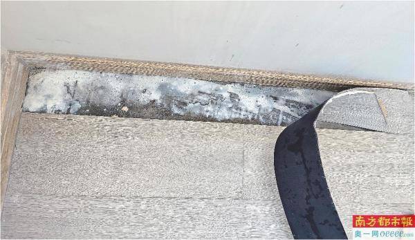 日前,沙井珑湾世界花园业主刘先生向南都记者反映称,在新交付楼房中发现的共性问题主要是阳台面积缩水,以其所购买的户型为例,“样板房是5块砖,但实际交付的只有4块”,而且阳台“地漏短缺”,水管没有完全接到地漏口上,整改也只是“用水泥涂了一下”,几乎“每家每户都是这样”,没办法排水。刘先生还提到,在实际交付中,开发商提供的空调“都是3级能耗”,已经属于“过时”的家电。在其新房内,南都记者还留意到,客厅立面墙和天花板连接处存在一条较长的裂纹,一直延续到阳台,客厅的吊顶内也可以发现不少残留的建筑垃圾;同时该套户型内,厨房内的布局与此前展示的户型图不一致。