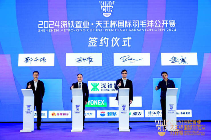 发布会上,赛事组委会发布了2024深铁置业·天王杯国际羽毛球公开赛的主标识、口号、奖金、赛程赛制、参赛阵容等事项。赛事主标识灵感来源于羽毛球,形似奖杯,巧妙地融合了赛事名称KING CUP的英文字母,蕴含着国际赛事的多元化和包容性。