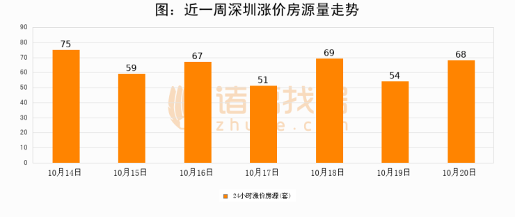 根据诸葛找房数据显示,深圳24小时涨价房源量为68套,较10月19日增加14套,环比上涨25.9%。与此同时,涨价房源占比小幅扩大,业主信心有所提升。