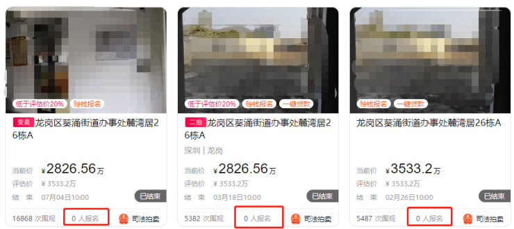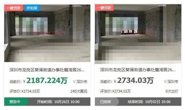 2021年,该大鹏别墅曾经在阿里法拍上进行过拍卖,2021年2月,以约3533万元的起拍价进行一拍,无人竞拍流拍;2021年3年,以约 2827万的起拍价进行二拍,无人竞拍流拍;同年7月,在经历两次司法拍卖流拍后,该别墅进入变卖环节,可惜依然无人问津,依然流拍。