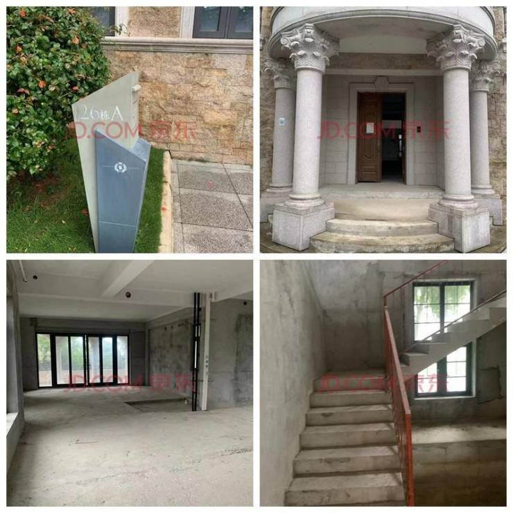 从京东拍卖平台公布的照片看到,该房产为毛坯状态,欧式建筑风格。
