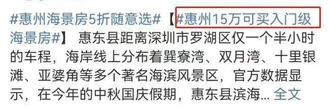 此外,在十几、二十万一套房的海景房的宣传下,惠州不免给人留下“鹤岗化”的印象。