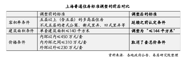 其中,上海对普通住宅的认定标准进行了优化,剔除了价格标准,同时提高了建筑面积标准,从140平方米提高至144平方米。