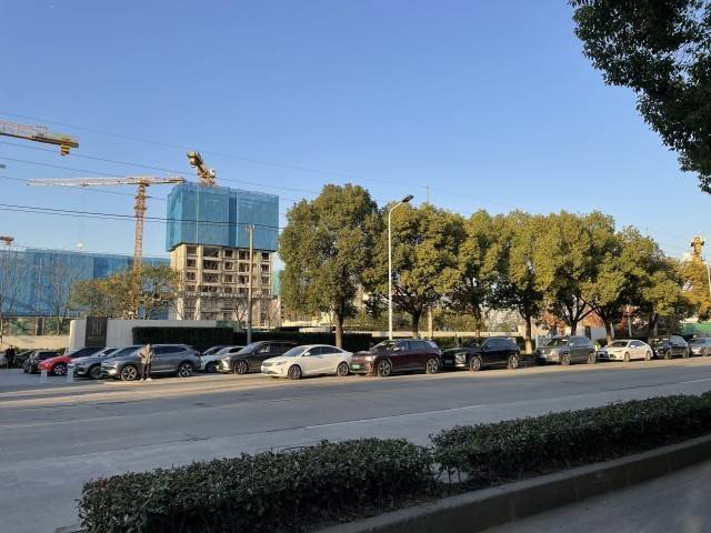 澎湃新闻在上述项目售楼处看到,售楼处人流量较大,且看房者车辆在项目外排起长龙。