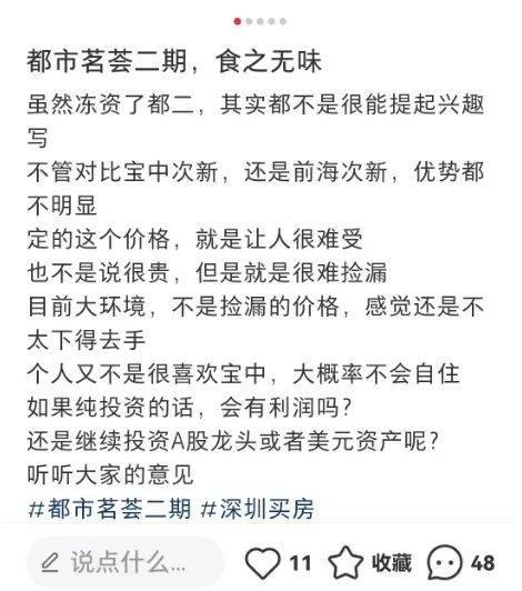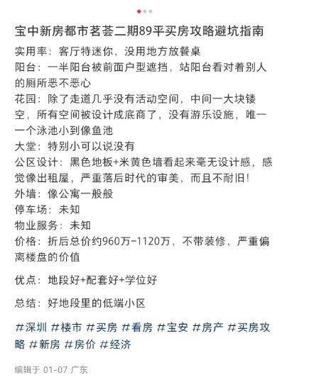 翻开社交平台我们发现,买房人认为,都市茗荟二期的主要槽点在于价格和户型设计。